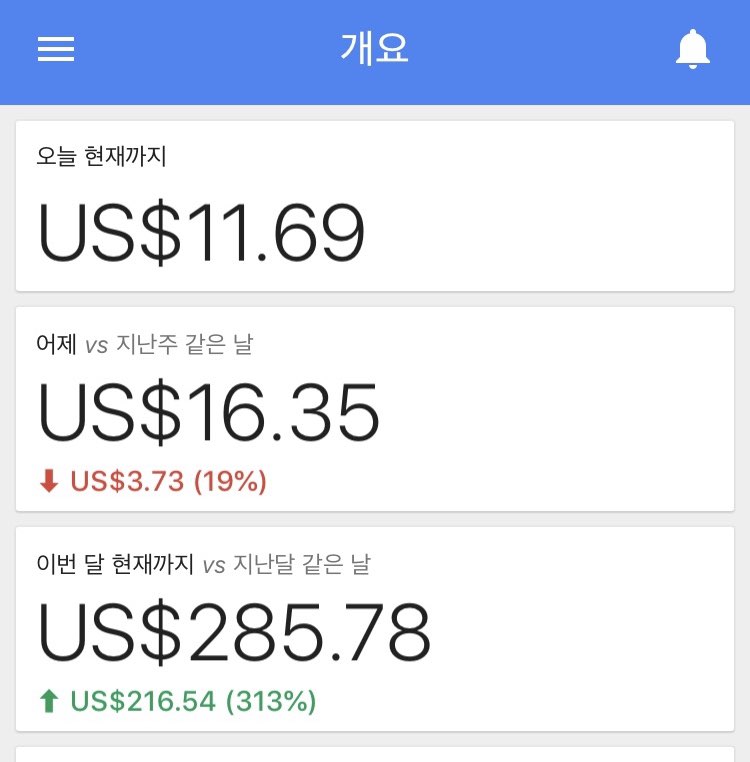 저는 약 6개월 전에 광고승인을 받고 지금 운영하고 있으며, 약간의 부수익(한달 285달러, 한화로는 35만원 가량)이 발생하고 있습니다. (아래 사진 참조)